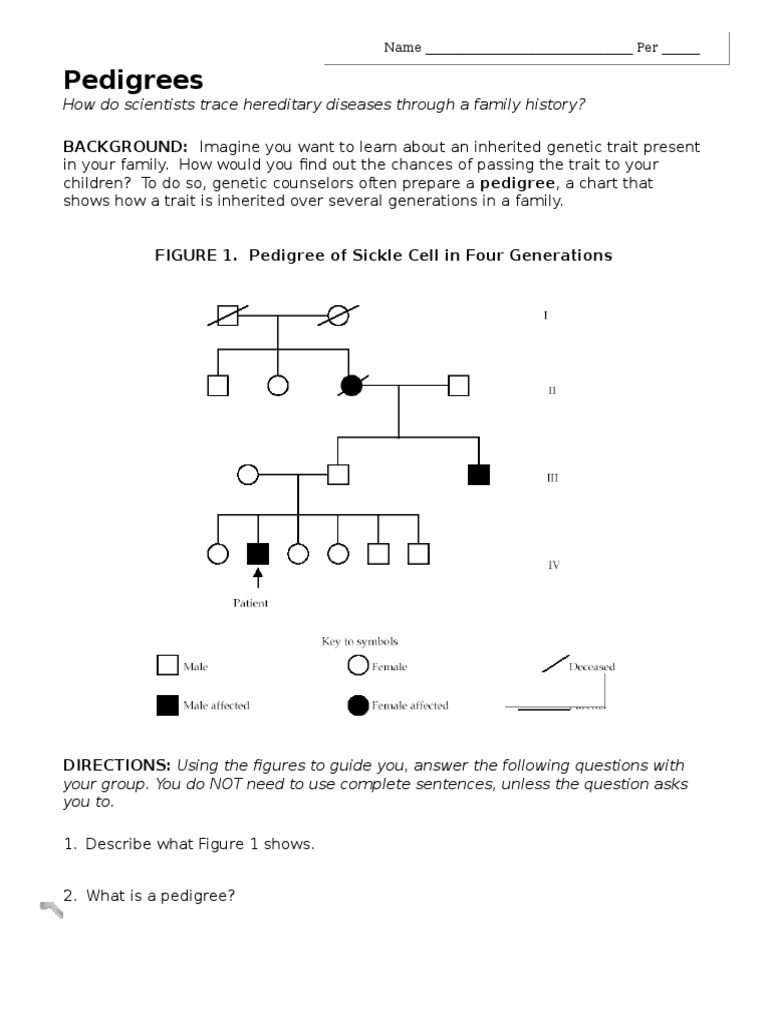 Pedigrees Pogil Pdf Dominance Genetics Genotype