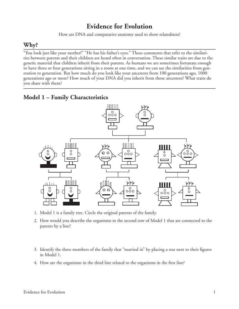Evidence For Evolution Pogil Part 1 Evidence For Evolution How Are Dna And Comparative Anatomy Used To Show Relatedness Why U201cyou Look Just Like Your Course Hero